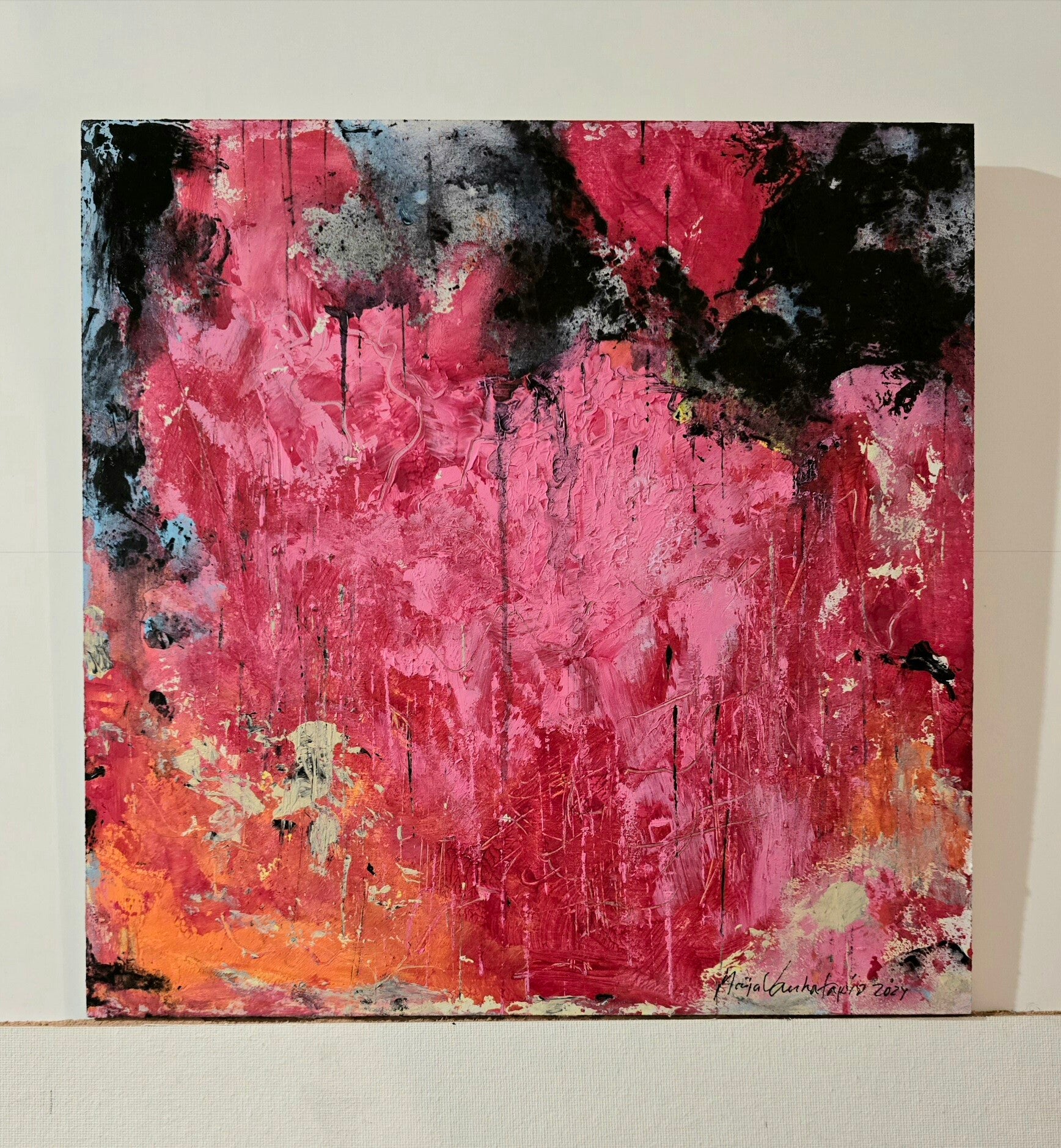 Pieni akryylimaalaus MDF-levylle 30x30x0,3 cm, takana rautalankaripustus